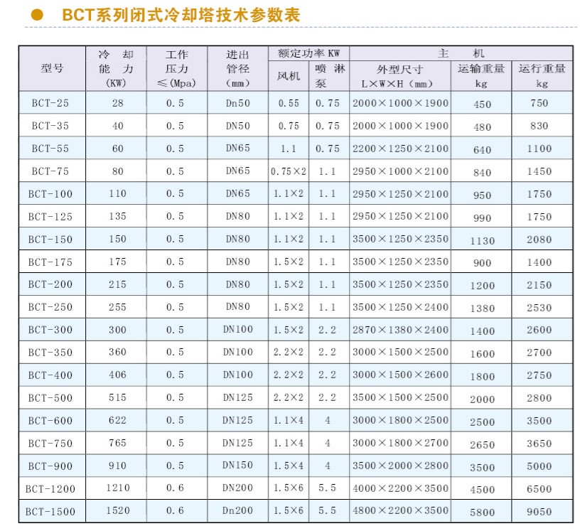 閉式冷卻塔成套設(shè)備由主機(jī)、膨脹水箱、循環(huán)泵及電控柜等組成。